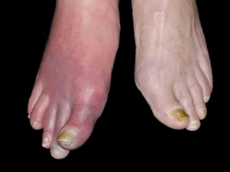 - Thay đổi màu sắc da vùng chân;