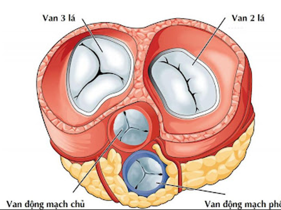 Bốn van tim, giữ cho máu lưu thông theo đúng hướng là van hai lá, van ba lá, van động mạch phổi và van động mạch chủ. Mỗi van có các cánh (lá van) mở và đóng một lần trong mỗi nhịp tim. Nếu một hoặc nhiều van không mở hoặc đóng đúng cách, dòng máu từ tim đến cơ thể bị gián đoạn.