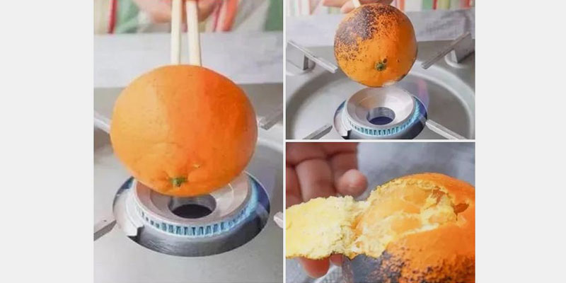 Sau đó bạn nướng cam trực tiếp lên bếp lửa trong 10 phút, nhớ lật quả cam liên tục cam nóng đều rồi bạn lột vỏ, ăn trực tiếp khi cam còn nóng ấm, nếu là trẻ nhỏ thì bạn ép lấy nước cho bé dùng.
