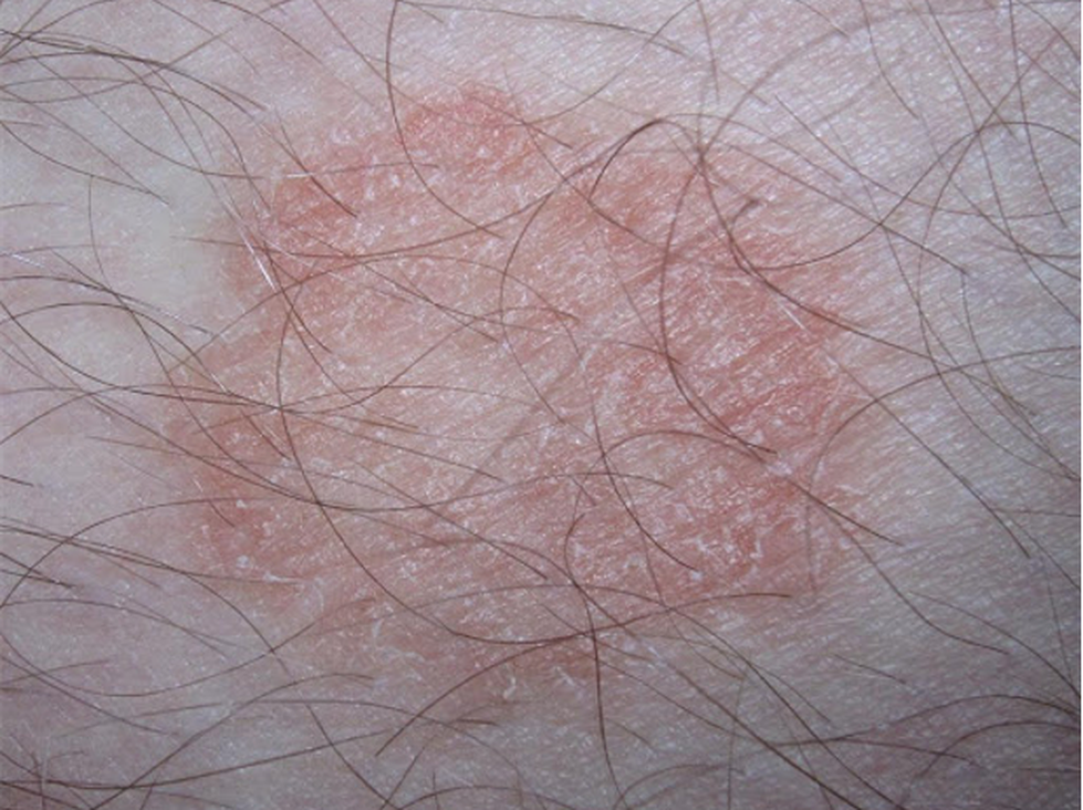- Vùng bẹn: Hắc lào ở bẹn trông giống như những nốt đỏ có vảy, ngứa, thường ở mặt trong của các nếp gấp da.