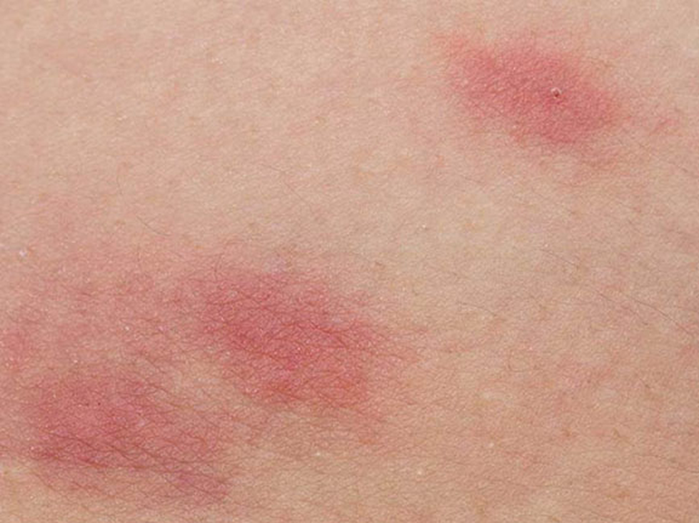 - Da xuất hiện mảng hoặc đốm hồng/đỏ hoặc phát ban.