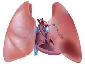 Sự xuất hiện của vật lạ, thường là cục máu đông tại động mạch phổi...