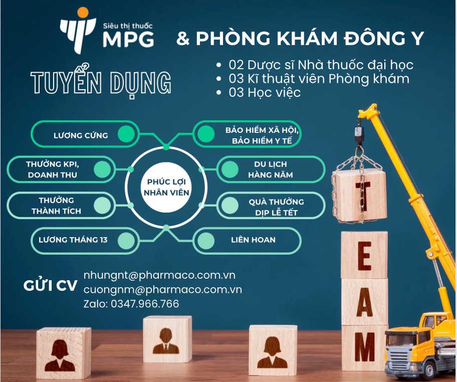 Nhà thuốc MPG ở 378 Minh Khai, HBT Hà Nội tuyển dược sĩ đứng quầy, inbox để nhận JD đầy đủ