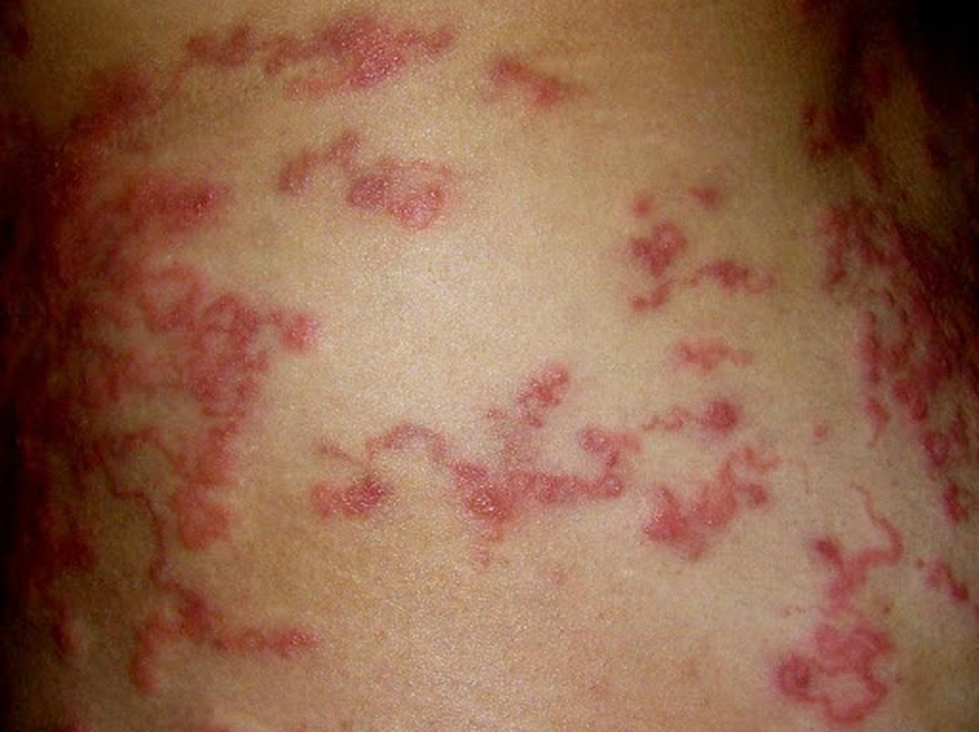 Giai đoạn ấu trùng: Viêm da tại chỗ nơi ấu trùng xâm nhập hoặc viêm phổi dị ứng khi ấu trùng qua phổi.