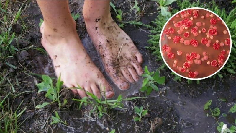 - Lây qua da: Vi khuẩn xâm nhập vào cơ thể qua các vết thương hở trên da khi tiếp xúc trực tiếp với đất hoặc nước bị nhiễm khuẩn.